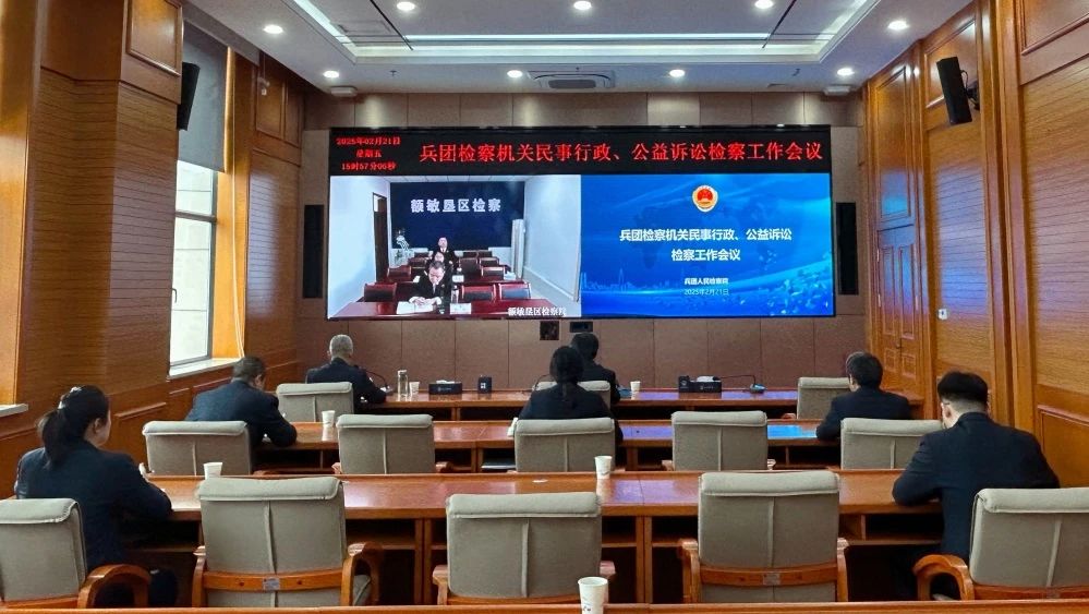 根据兵团检察院党组统一部署,2月21日兵团检察院以视频方式召开兵团检察机关民事、行政、公益诉讼检察工作会议,部署推进2025年兵团检察机关民事、行政、公益诉讼检察重点工作。兵团检察院党组成员、副检察长易志斌出席会议并讲话,兵团三级检察机关分管院领导及民事、行政、公益诉讼检察部门全体检察人员参加会议。