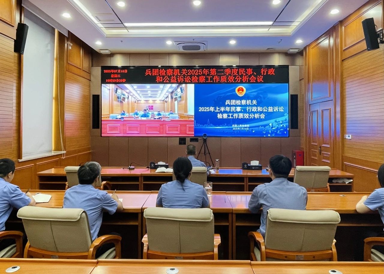 近日,兵团检察院以视频方式召开2025年上半年民事、行政和公益诉讼检察工作质效分析研判会,总结分析民事、行政和公益诉讼检察工作情况,查找在办案质效、对下指导、数据赋能、能力作风等方面存在问题,研究对策建议,提出下一步工作举措。兵团三级检察机关民事、行政、公益诉讼检察部门人员参加会议。
