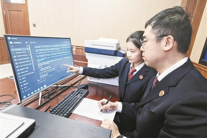 兵团人民检察院八师分院工作人员利用人工智能系统办理案件(资料图片)。近年来,兵团检察机关积极探索人工智能技术与公益诉讼检察工作深度融合路径,以科技为助力打通线索排查“最后一公里”,为守护绿水青山和民生安全构筑更智能、更精准的司法防护网。